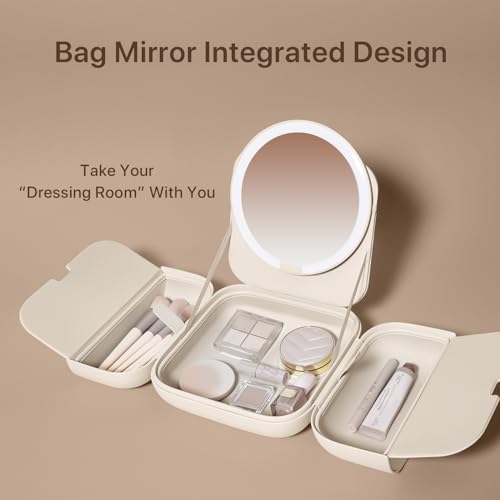 AMIRO M2 Travel Makeup Bag with 5 Level Brightness & 3 Color LED Mirror, Portable Makeup Artist Organizer, White