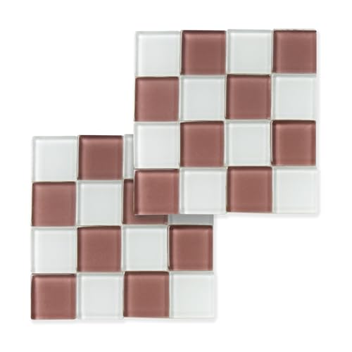 Specification: Checkered Drink Coaster Set of 2 | 4″ Square, Glass Tiled Coasters for Home Decor, Kitchen Decor Or Table Decor. Jewelry Dish Tray, Decorative Plate, Best Gift Idea for Her by IOBBO (Brown)