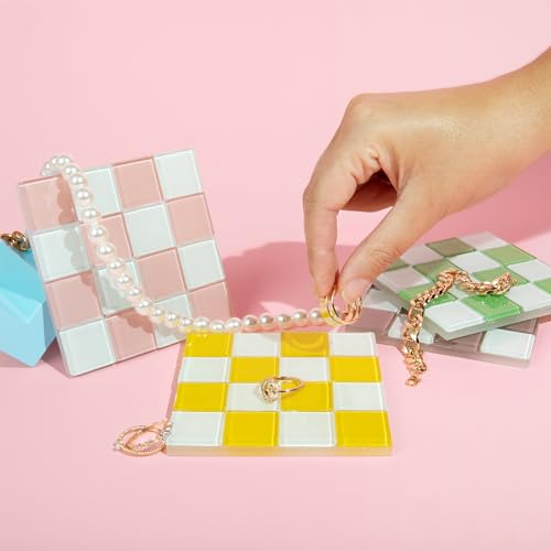 MULTIFUNCTIONAL JEWELRY TRAYS & HOLDERS – These trendy glass checkered coaster; double as chic jewelry dish and jewelry tray for displaying rings, necklaces and more. The tiled design elegantly showcases your accessories while protecting surfaces as functional coasters.