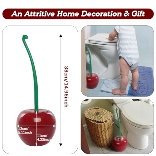 Specification: Creative Toilet Brush with Holder Bowl&Long Handle, Household Bathroom Cleaning Tool Cleaner and Base for Storage&Organization, Thick Bristle for Deep Clean-Rust Resistant Leakproof-Red Cherry Shape